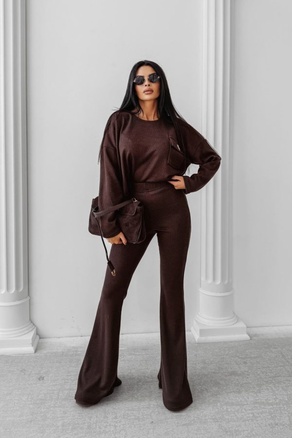 Kényelmes női szett puha, rugalmas kötött anyagból. Felső és alsó darab harmonikusan illeszkedik, mindennapi viselethez ideális. Letisztult részletekkel és logóval.