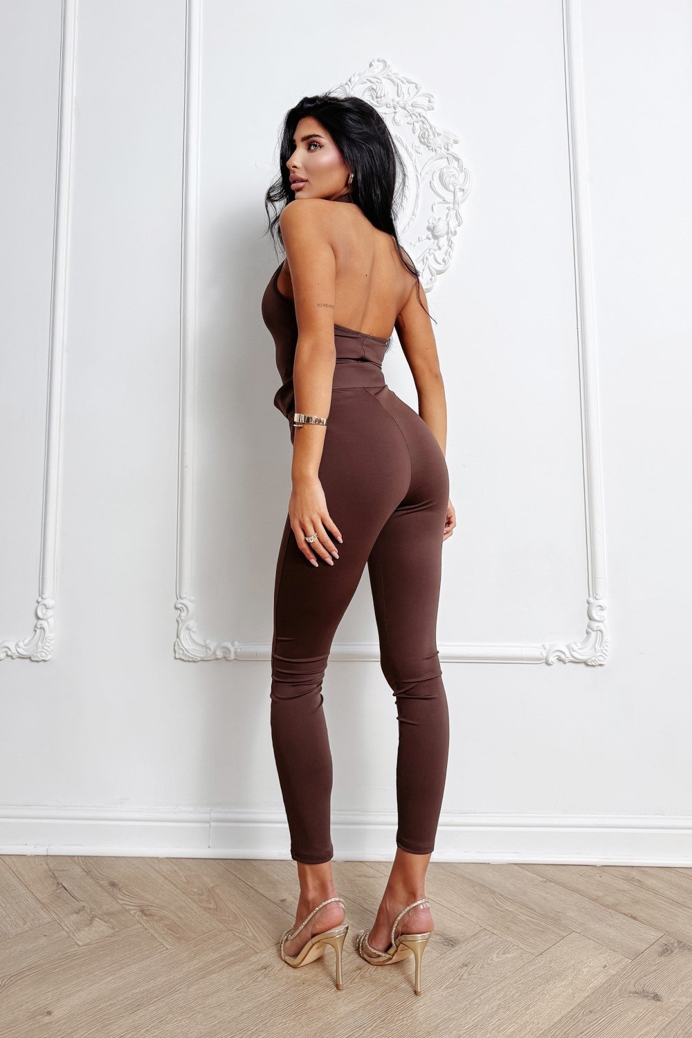 Tökéletesen testhezálló overál elegáns állógallérral és érzéki, V-alakú kivágással.